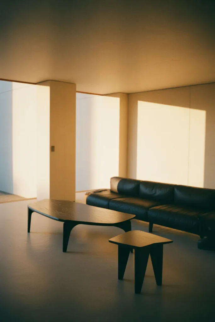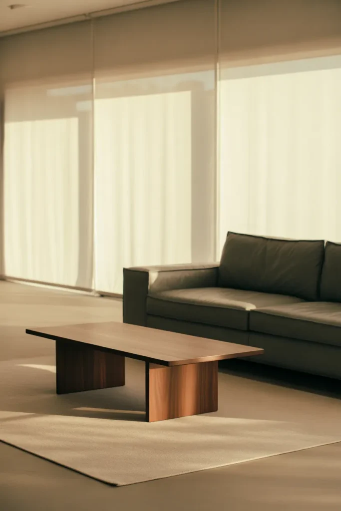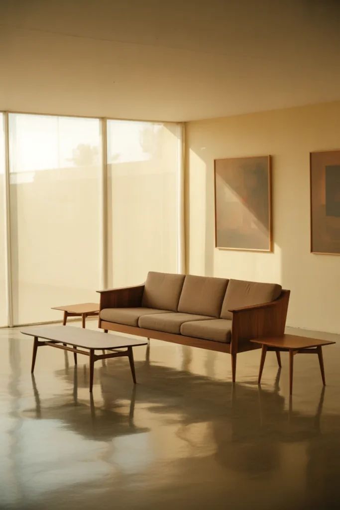 Minimalism mid-century adults with silhouettes design restraint. It’s 2026; mid-center silhouettes merges with minimalist design for an approachable and refined living room. Intentional and airy spacing, clean lines, and warm wood creates a fresh and clean space.