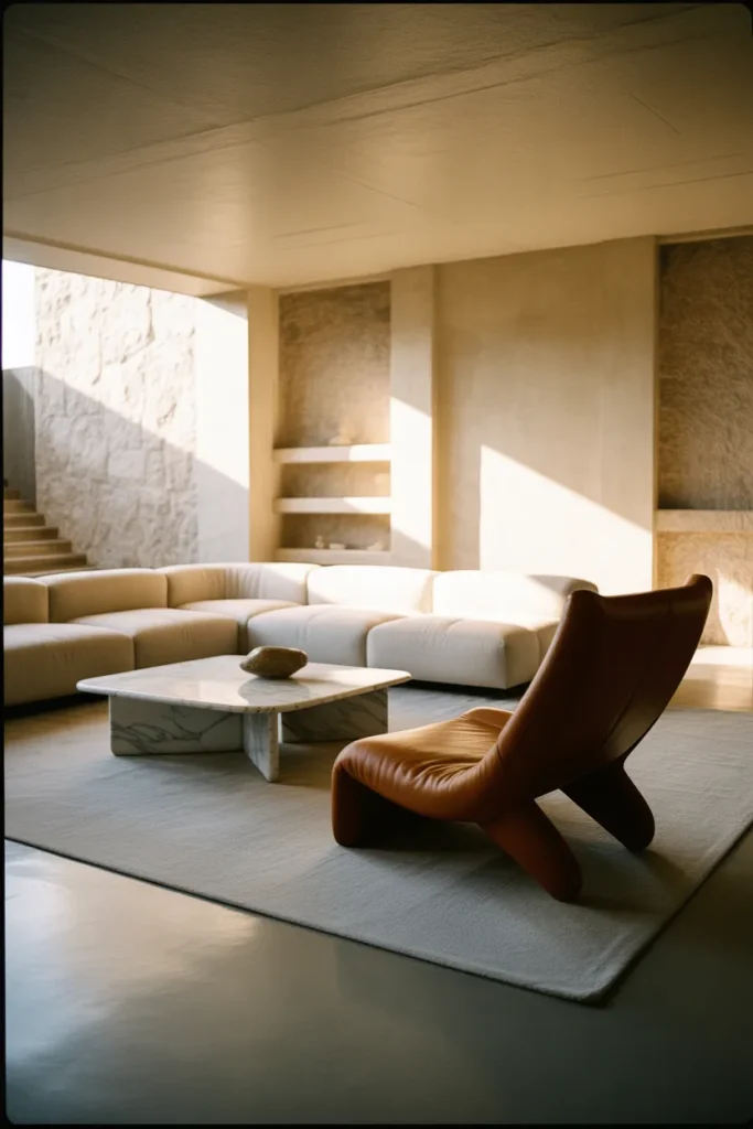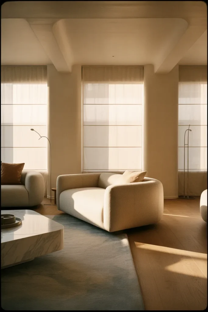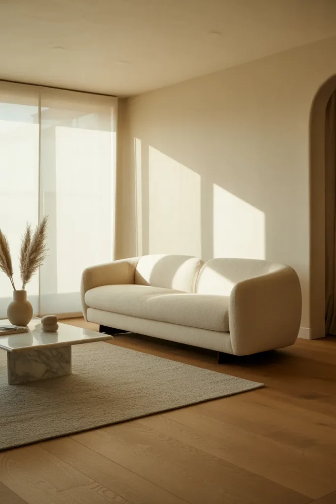 Modern minimalist living rooms in 2026 center around clarity and proportion. Timeless order is created through clean lines, space control, and modern forms. This style emphasizes structure and balance, rather than decoration.