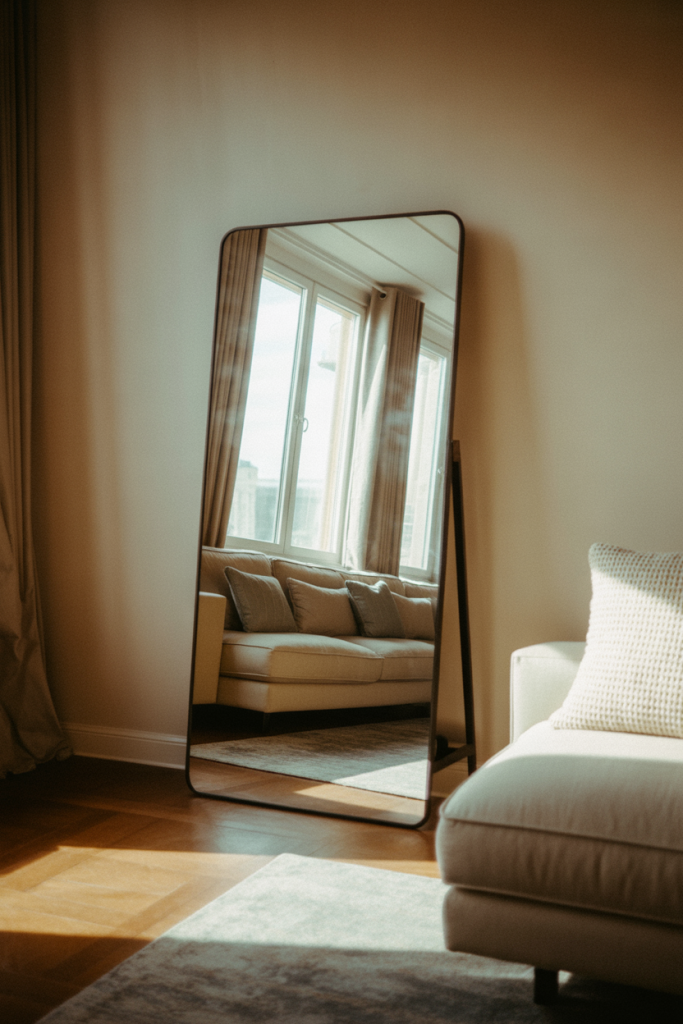 Expert-style commentary often emphasizes proportion here. The mirror should relate to nearby furniture in scale, not overpower it. Designers suggest placing it opposite a window to amplify natural light, a simple trick that instantly elevates everyday rooms.