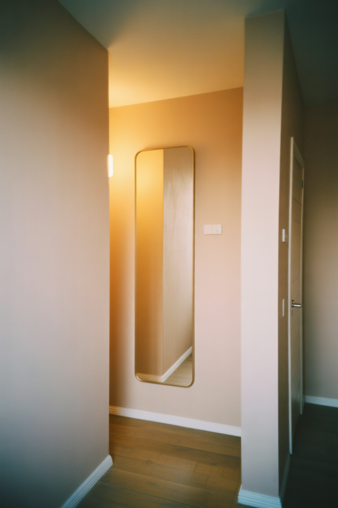 Practical insight: placing the mirror slightly away from door frames prevents visual clutter and keeps reflections calm. Designers often recommend matte walls around the mirror to avoid glare, helping hallways feel purposeful rather than transitional.