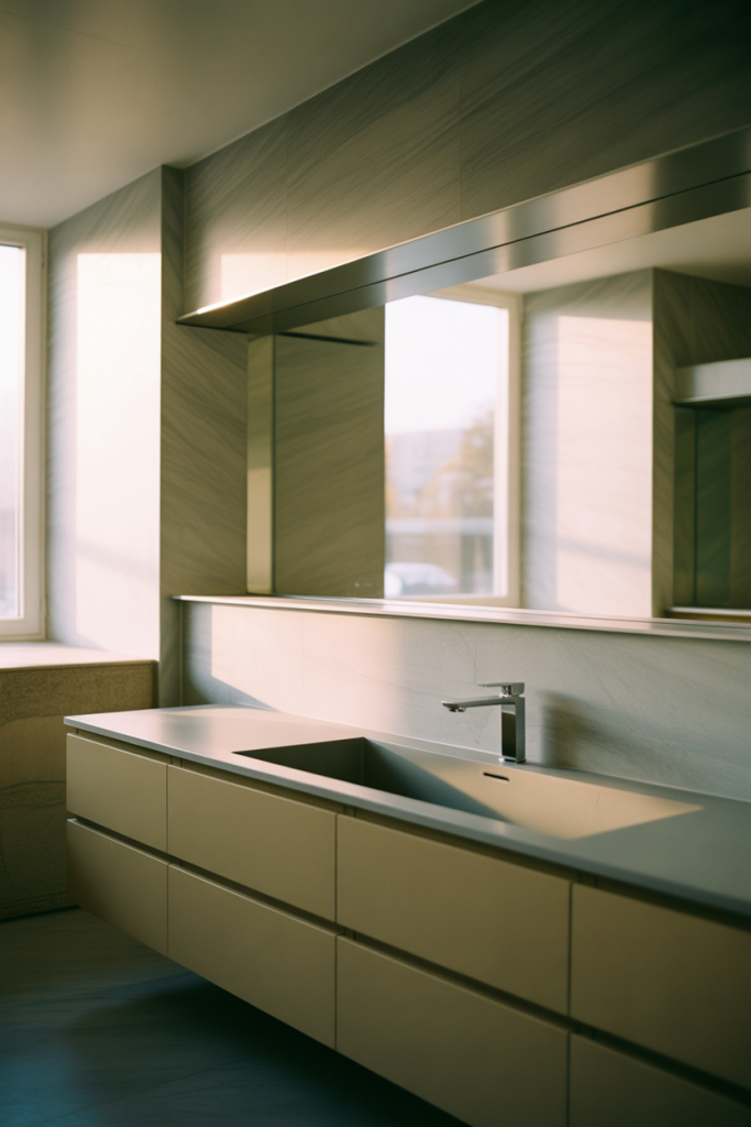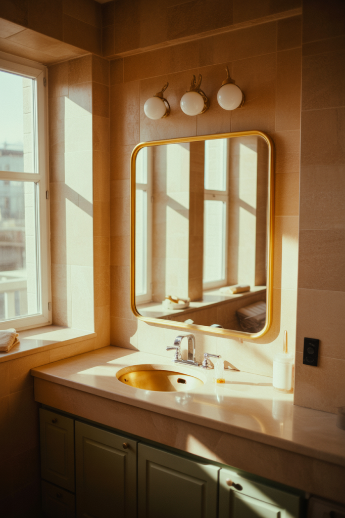 Practical insight: installing the mirror slightly lower than eye level helps avoid harsh overhead reflections from ceiling lights. Designers often recommend pairing it with wall-mounted lighting to keep the look balanced and glare-free.