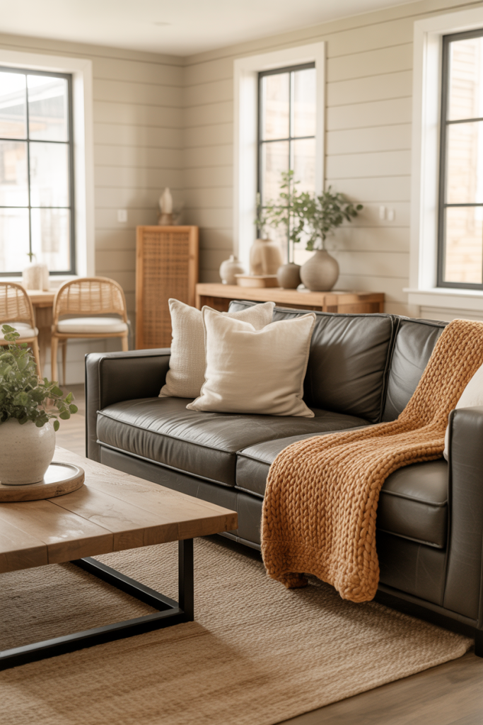 Blending brown couch warmth with subtle black accents strikes a chic balance that decorators adore in 2026. During a recent consult, a homeowner switched her brass lamps for matte black ones, creating a surprisingly elegant transition. This pairing stays rooted in farmhouse comfort while adding a crisp, modern edge.