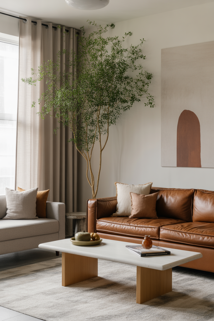 Bringing in organic textures—raw woods, linen drapes, and stone accents—creates a harmonious layout that feels both modern and lived-in. A friend who moved into a compact bungalow told me how adding a natural jute rug and a reclaimed wood console changed the entire mood of her room. When paired with soft white walls and subtle greenery, the space feels naturally composed without trying too hard.