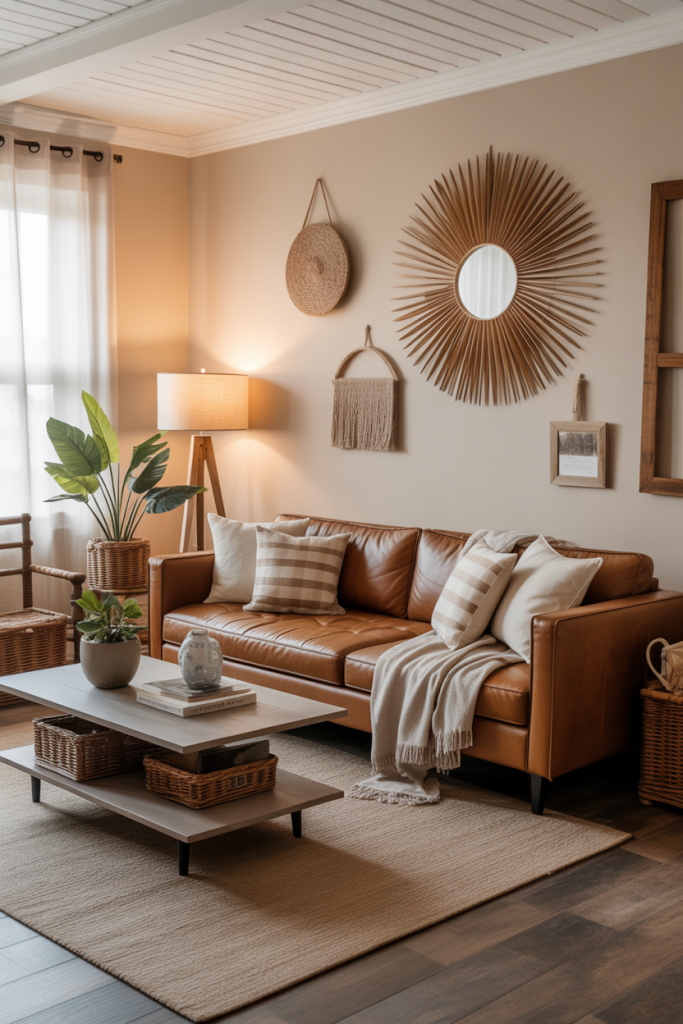 The brown couch is officially back, embraced by stylists for its earthy warmth and versatility. A leather or fabric brown sofa anchors a room, especially when surrounded by wall decor like reclaimed wood frames or black-and-white prints. I recently saw an older farmhouse where the family paired a chestnut sofa with striped pillows, instantly elevating the space without spending much.