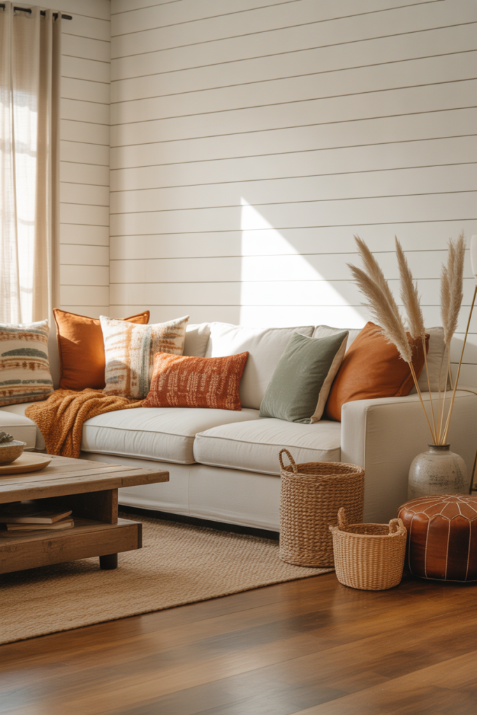 Adding gentle boho touches—macramé accents, patterned pillows, or woven baskets—brings relaxed charm without overpowering farmhouse structure. A stylist I follow online said her clients love the mix because it feels collected over time. It’s especially effective in a small space where every detail needs to feel personal and functional.