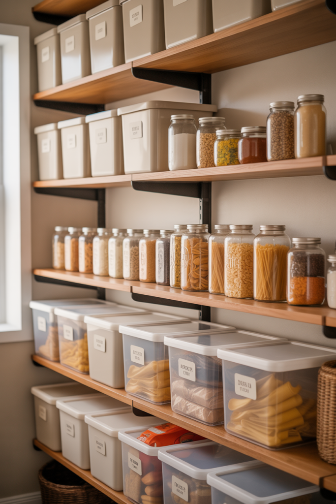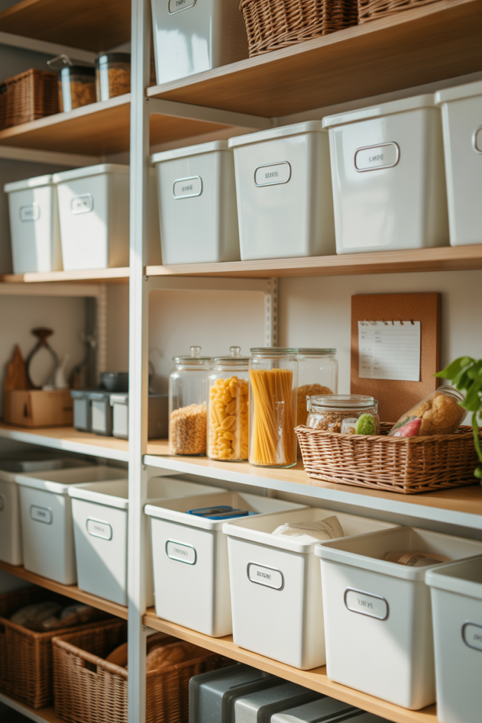 Forget Pinterest perfection—realistic organization means a space that works for your actual routine. Combine Ikea bins for dry goods with open ideas shelves for quick-grab snack items. Keep it authentic with a mix of containers and baskets instead of chasing picture-perfect symmetry.