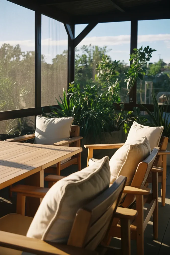 A screened-in patio designed for comfort supports real-life routines, from work breaks to evening meals. Using cozy furnishings and soft lighting makes the space usable for so much more than just occasional relaxation. It will feel protected, calm, and with intention lived in.