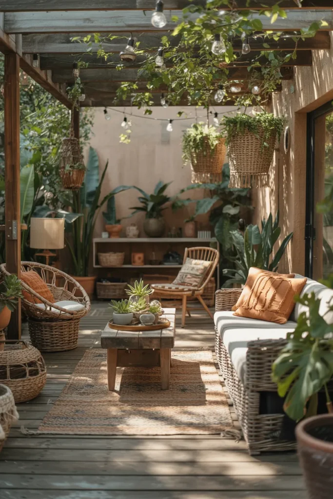 24 Bohemian Patio with Layered Plants