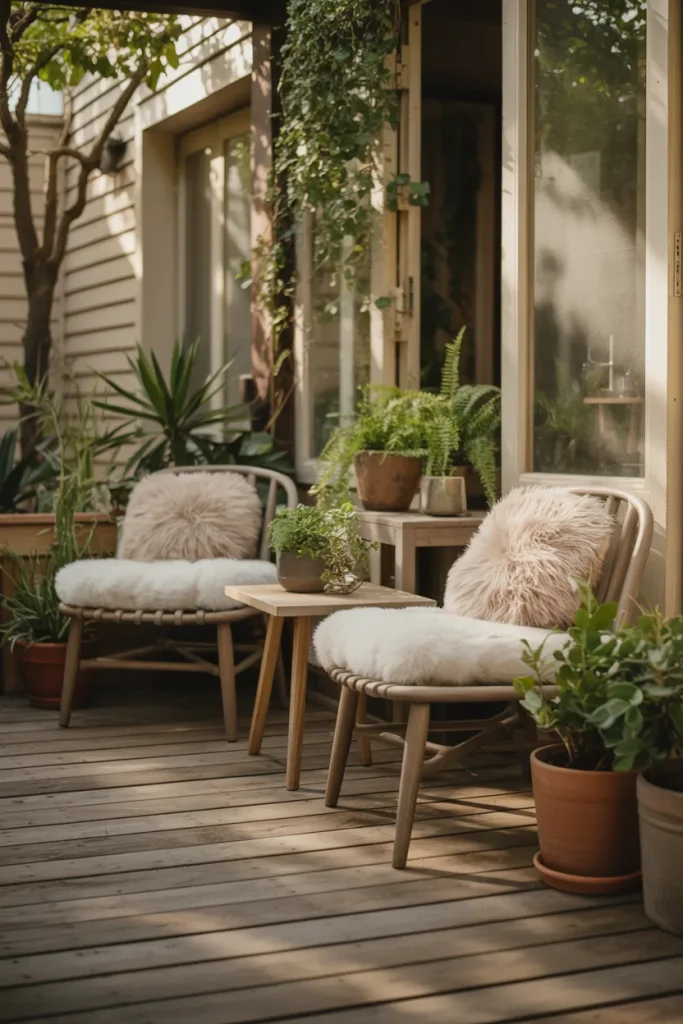 Designing a small space patio around daily habits can make it feel bigger than it is. A slim arrangement with a chair, a side table, and a small arrangement of plants transforms even a narrow apartment patio into a personal pause point. It’s about creating a space to be present, not to entertain.