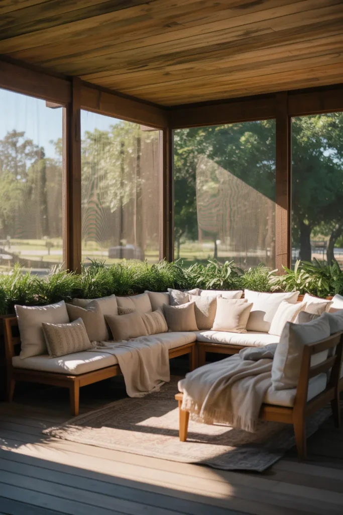 A typical oversight is decorating screened porches too lightly. Treat it like an indoor room by adding layered lighting and textiles. Avoid lightweight furniture that shifts easily; it can make the area feel unsettled.