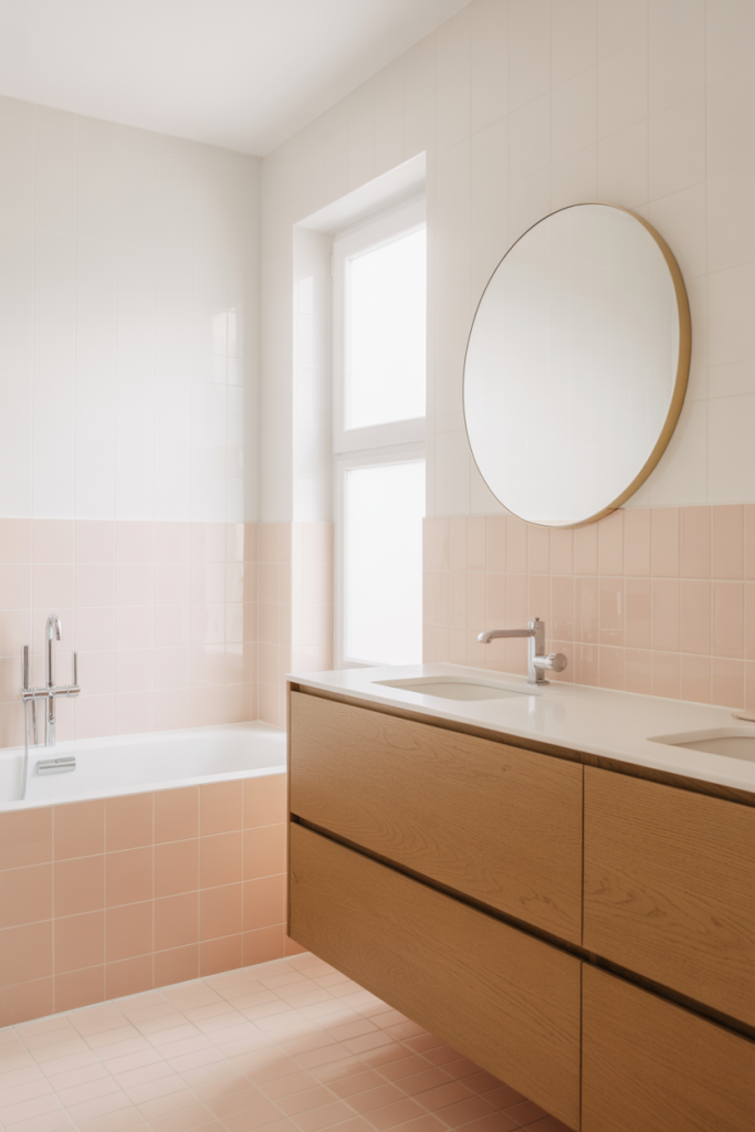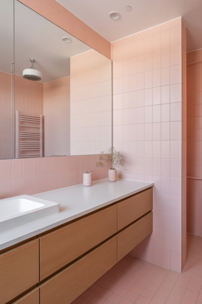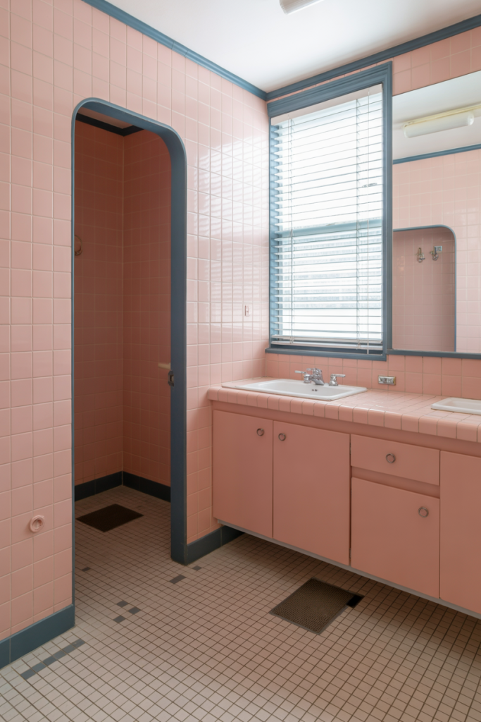 Old-school pink tiles gain new life when mixed with Vintage details, Blue and trim, or Dusty rose accessories. I once saw a mid-century bungalow where the owner leaned into the original tilework rather than replacing it—and the result felt effortlessly Aesthetic. This approach suits older homes that still have 1950s charm, allowing you to preserve history while updating functionality.