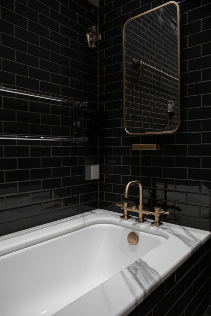 In one of my tours of lofts for home designs, for instance, one small bathroom design stood out because of its use of vertical stripes to give your bathroom designs a higher ceiling for a larger-looking bathroom at home!