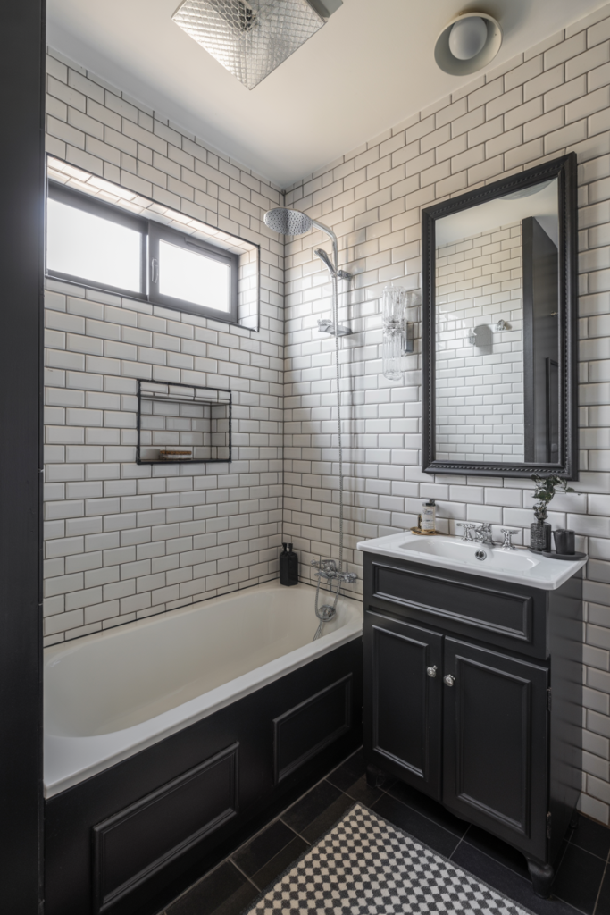 A crisp black and white scheme gains fresh dimension in 2026 when paired with brushed gold or stainless accents. This combo works wonders in tight layouts—especially when paired with a petite bathtub or narrow shower walk. I once toured a tiny townhouse where metallic touches made the small bathroom feel intentionally luxurious rather than squeezed.