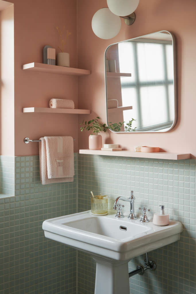 15. Rustic Pink Clay Tones for a Warm Compact Space