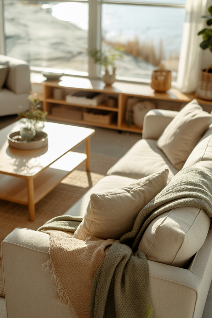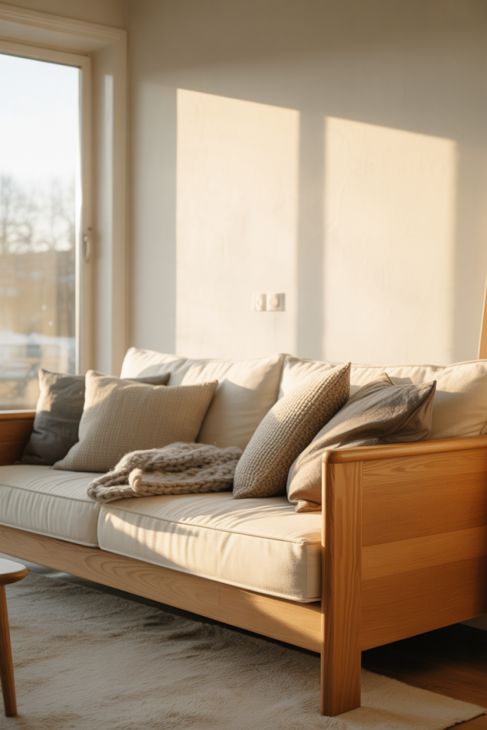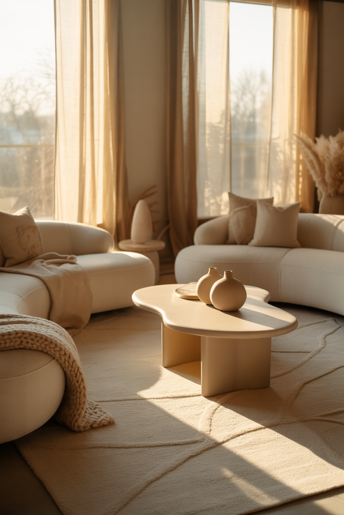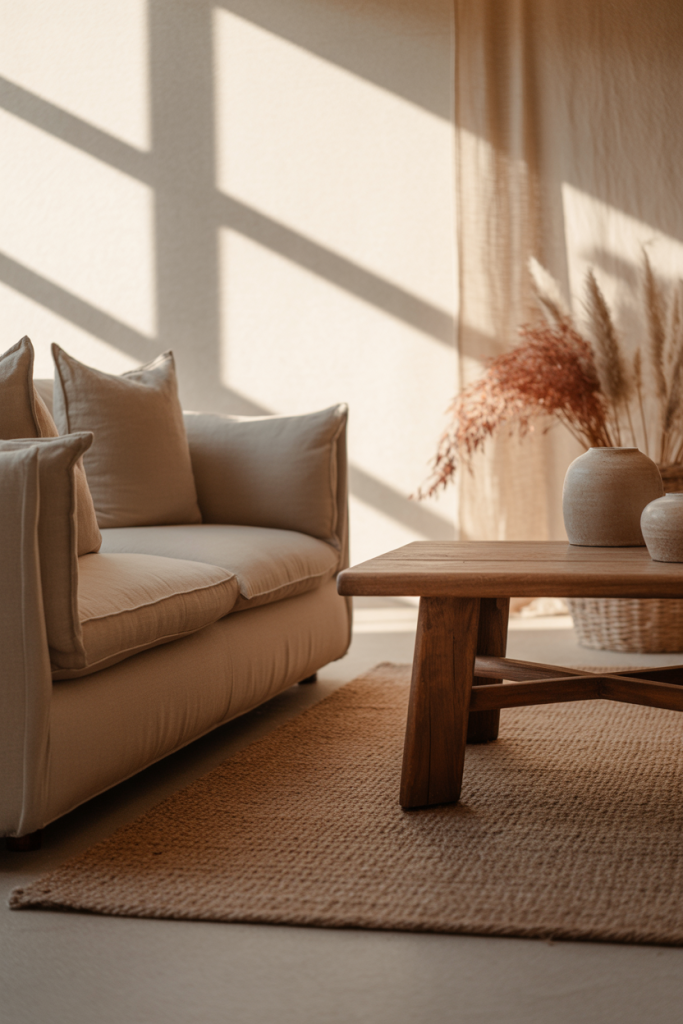 A small practical insight: contrast matters. Even in light rooms, adding one darker element—like a chair or side table—keeps the space from feeling washed out.