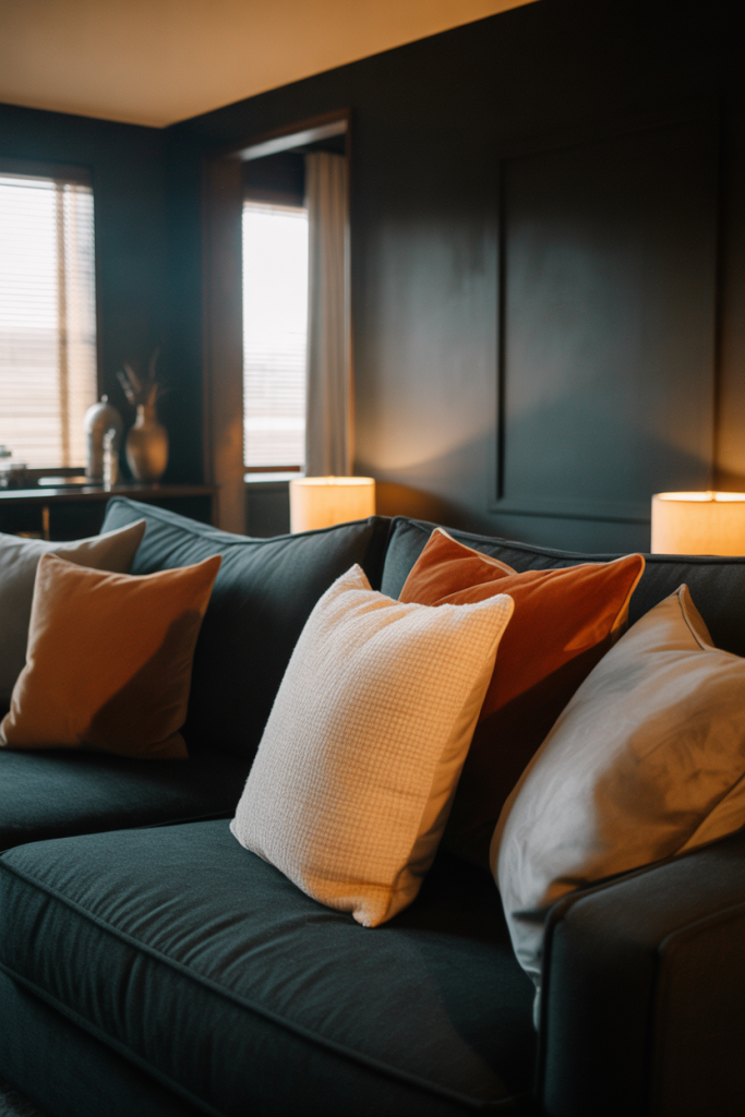 In many American homes, especially those in colder regions, darker living rooms become favorite winter spaces. They naturally support slower evenings, movie nights, and quiet conversations. When paired with warm lighting, dark colors feel grounding rather than gloomy.