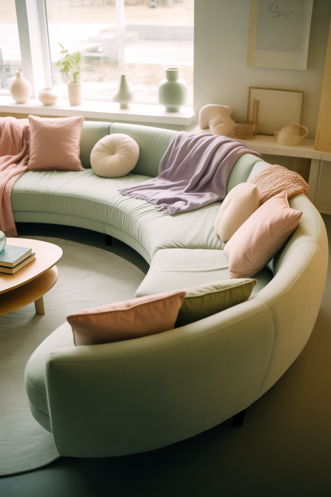 Some cozy living rooms draw design elements from the whimsical and playful digital worlds of Toca Boca or Bloxburg. These worlds often incorporate rounded furniture, soft gentle colors, and an aesthetic that is grounded and joy-filled. It is a cozy feeling that is not childish.