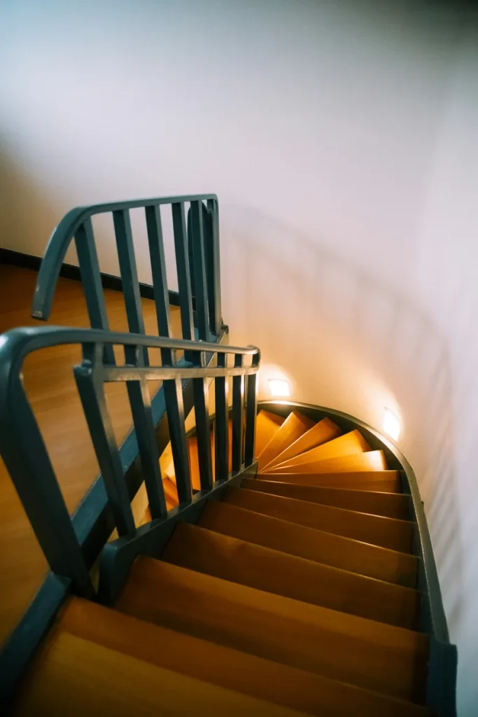 A slim Spiral staircase can solve access issues in a finished Basement where square footage is limited. When finished in matte Dark metal or wood, it feels intentional rather than temporary. In partially Enclosed layouts, it becomes a subtle focal point.