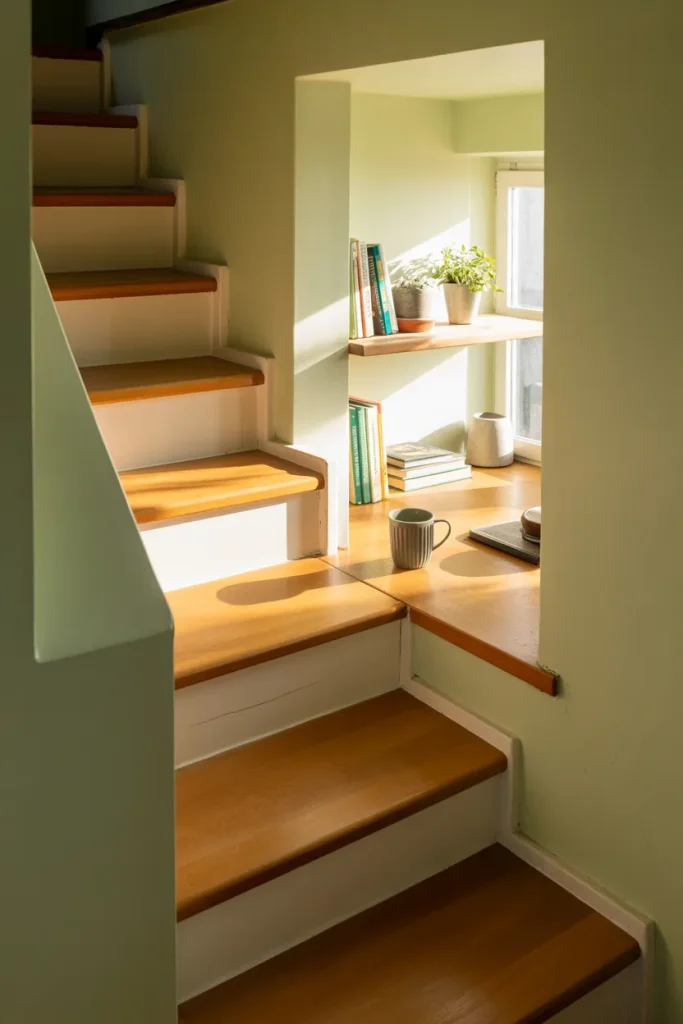 A homeowner in Vermont once turned this forgotten corner into her remote work spot during winter months. With a small lamp and proper shelving, it became one of the most used areas in the house.