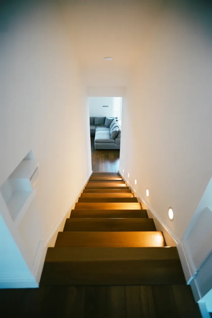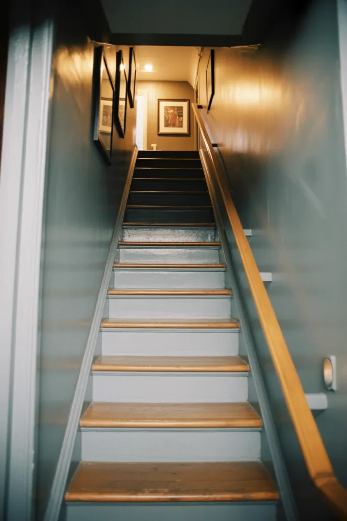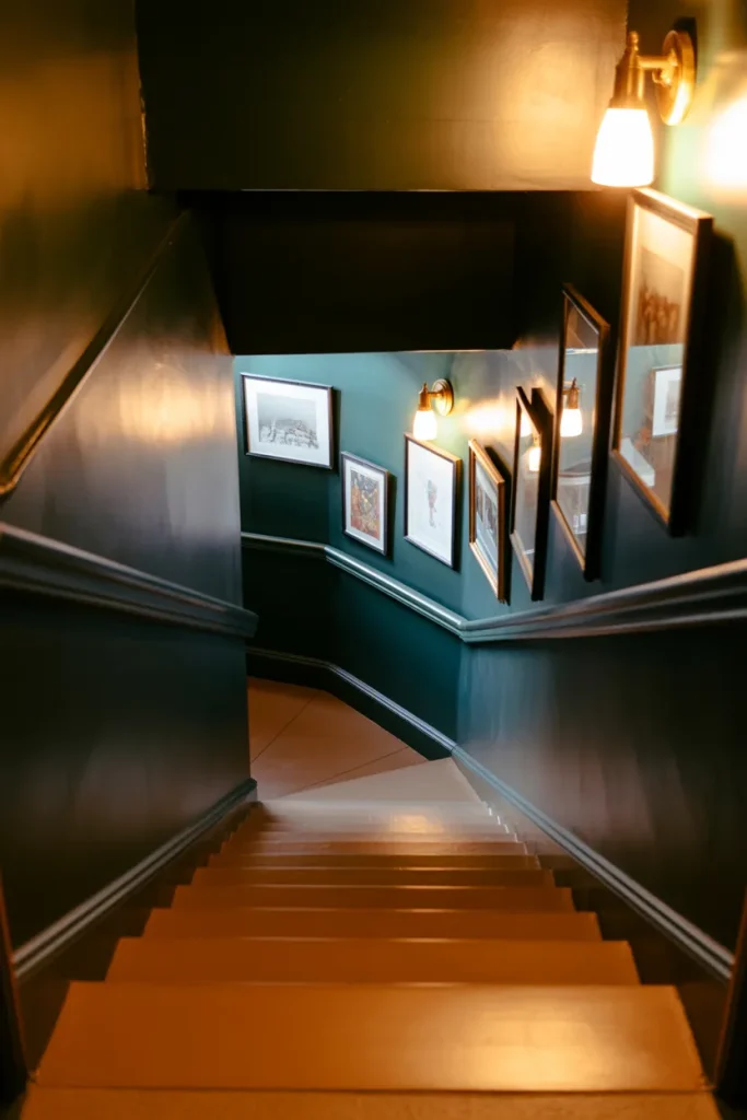 A Basement staircase doesn’t have to feel like an afterthought. Painting walls a rich Dark hue and adding subtle Decoration can turn the descent into a moody transition. Even traditionally Enclosed stairways benefit from thoughtful lighting and texture.