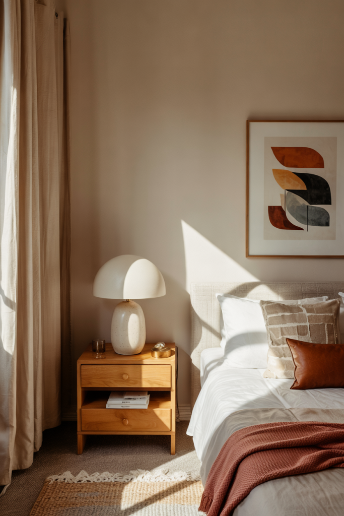 Introduce personality with a soft splash of cozy modern color—muted greens, dusty blues, or warm terracotta. A sculptural lamp and textured bedding add depth. Pairing this with hints of cozy modern elegance and delicate grey accents creates a balanced mood guests enjoy. Even tiny accessories can make the look shine.