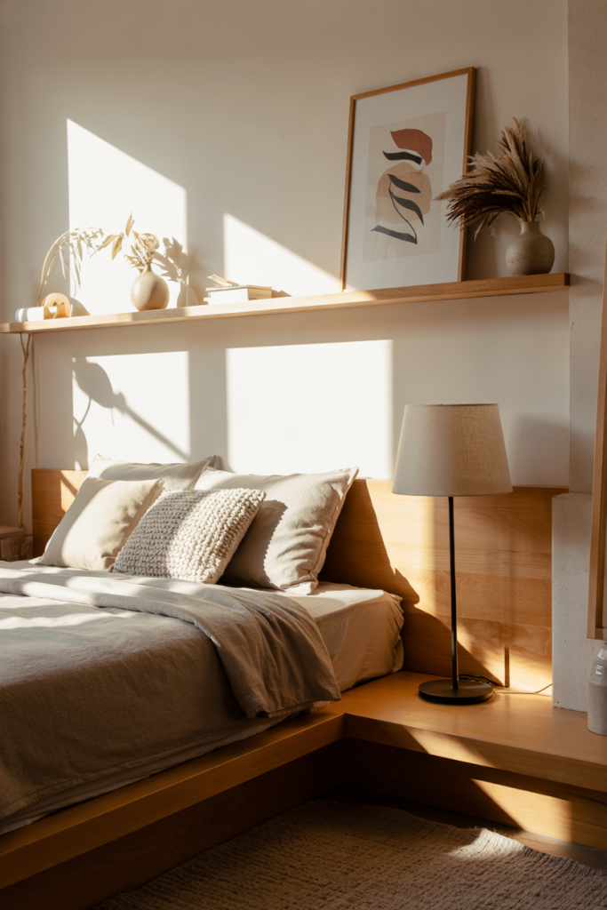 A practical insight here is to keep nightstand alternatives slim—wall shelves or ledges save floor space and still give guests a place for their phone and water. This trick works especially well in apartments where reconfiguring furniture isn’t an option.