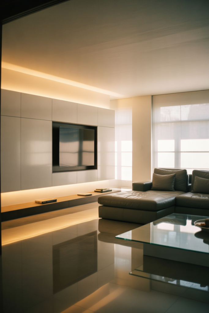A fully Floating TV wall creates a light, modern presence. Hidden LED lighting adds depth while keeping the design Elegant and uncluttered. This approach feels especially refined in contemporary homes.