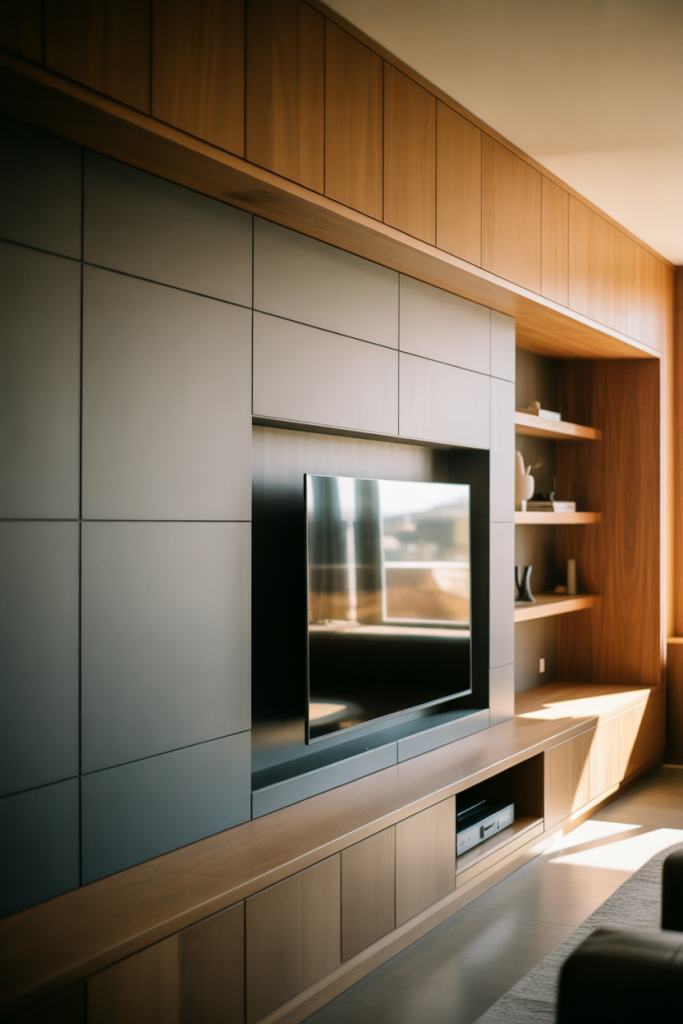 An expert-style commentary often highlights proportion here. Keeping panels wider than tall helps avoid a cramped look and ensures the TV feels integrated rather than boxed in.