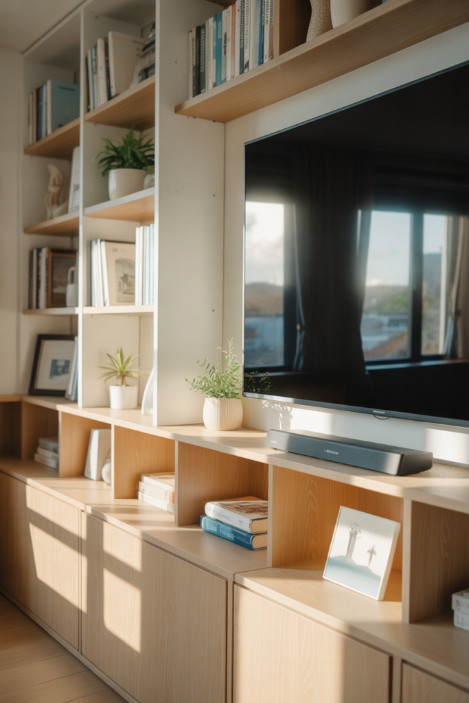 A brief micro anecdote: a certain customer remarked that rearranging shelf objects by season made the TV wall feel new without spending any money. Seasonal changes kept the area feeling new for an entire year.