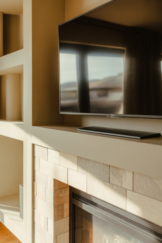 Design experts often caution against mounting the TV too high. Keeping it closer to eye level preserves comfort and avoids neck strain, a mistake many homeowners only notice after living with the setup.