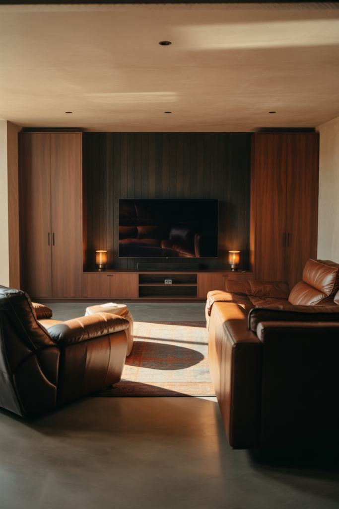 With darker color palettes and bolder materials, turning a basement into a theater space provides more design freedom. A dedicated TV wall can turn unused square footage into an entertainment hub, and can feel immersive and intentional.