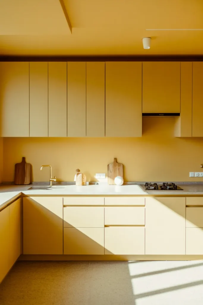 Sometimes the simplest move makes the biggest impact: fresh Paint in a muted yellow tone against streamlined surfaces. Pair it with neutral Decor and understated hardware for a clean, modern look. This approach highlights color without clutter.