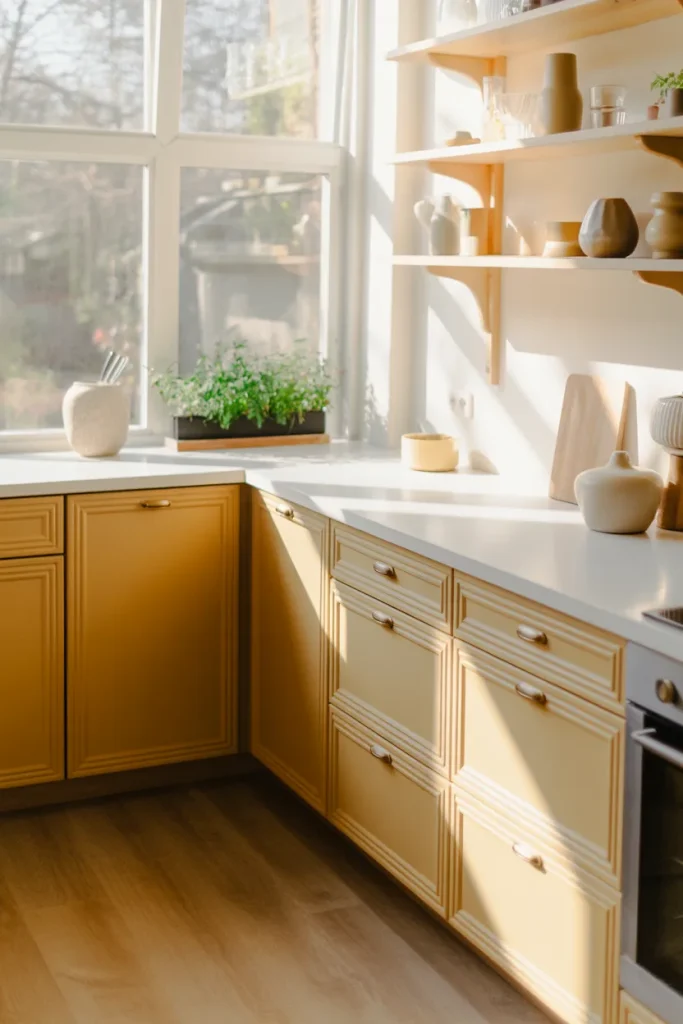 Sometimes the simplest move makes the biggest impact: fresh Paint in a muted yellow tone against streamlined surfaces. Pair it with neutral Decor and understated hardware for a clean, modern look. This approach highlights color without clutter.