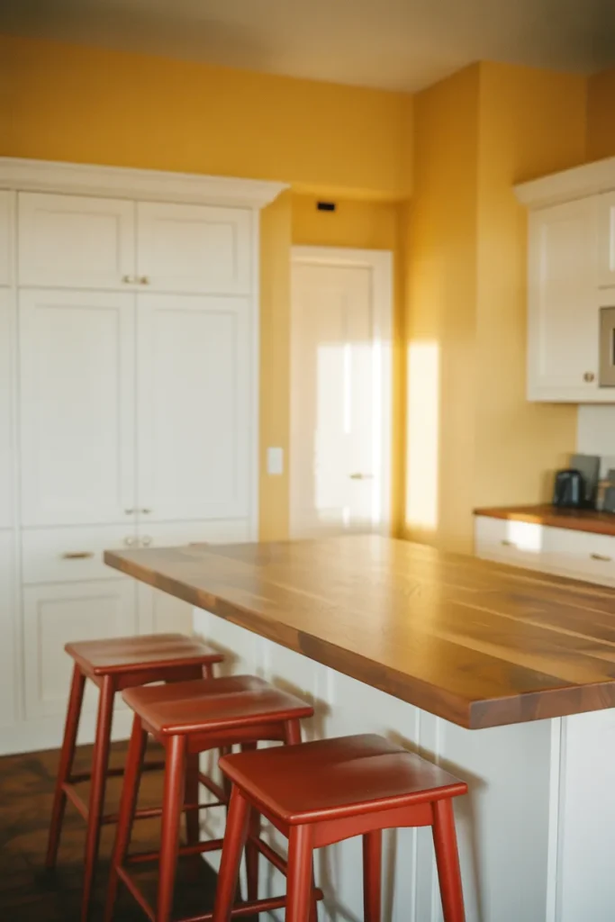 I recently saw a homeowner use deep red bar stools against sunflower cabinetry, and the effect was unexpectedly sophisticated. The key was restraint—limiting red to a few intentional accents kept the space bold yet controlled.