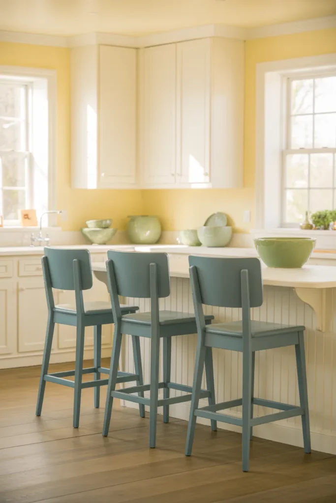 If a full remodel feels excessive, start with Pale yellow Decor layered with thoughtful Blue and ceramics. Even subtle shifts—painted stools, dishware, or open shelving—can brighten a neutral kitchen without construction.