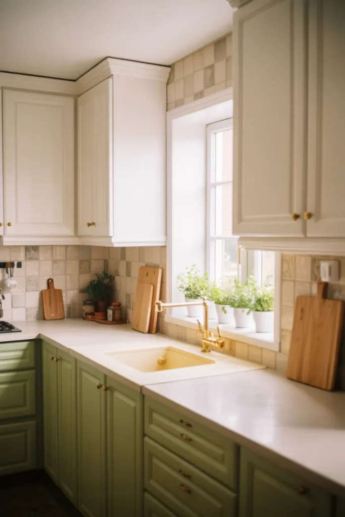 Soft color is redefining the white kitchen in 2026, especially with Sage green accents. Pair white Cabinets with Green and botanical decor or a painted pantry door for a subtle twist. Add thoughtful Decor like ceramics or plants, and the room feels calm rather than clinical.