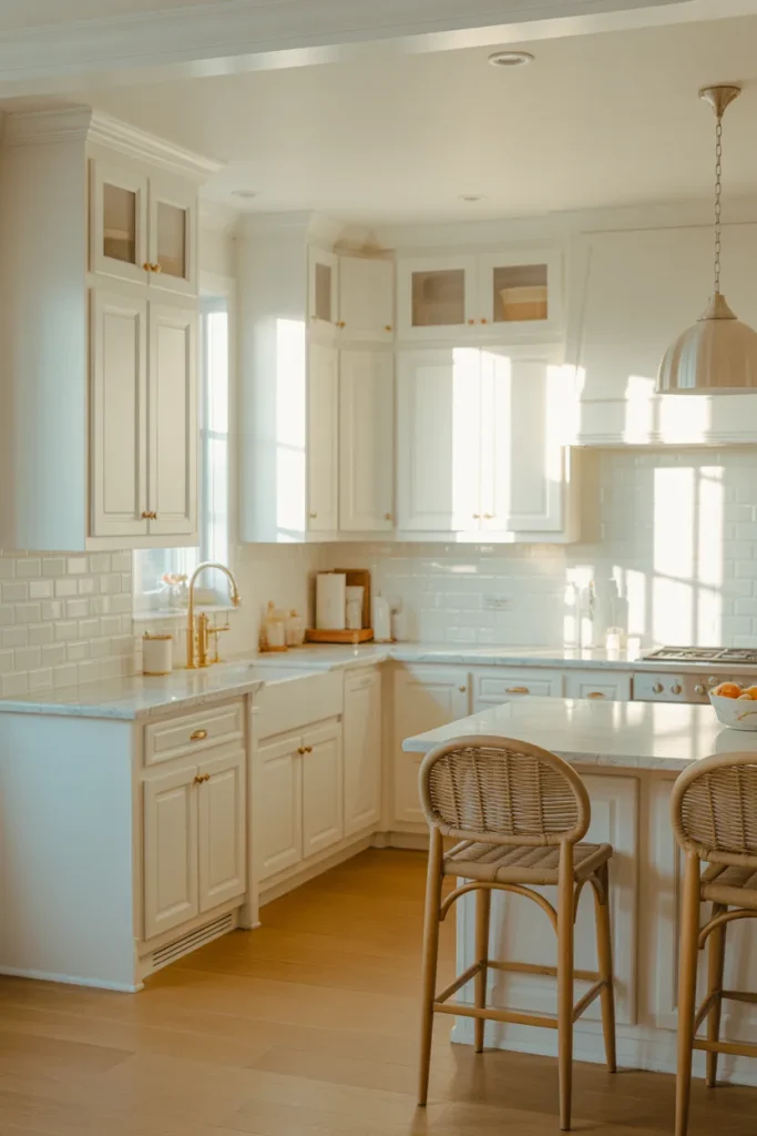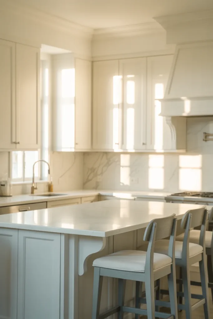 One homeowner told me she swapped her all-white island for a muted green version, and suddenly the space felt “alive.” A small dose of color can shift the entire mood without sacrificing the clean white foundation.