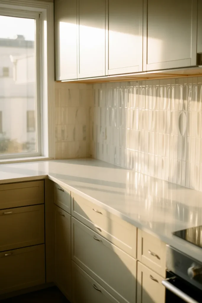 Creative Backsplash ideas are defining white kitchens in 2026. Instead of plain subway tile, mix texture with sculptural Tiles and pair them with clean Countertops. Keep the rest of the Design restrained so the backsplash becomes the focal point.